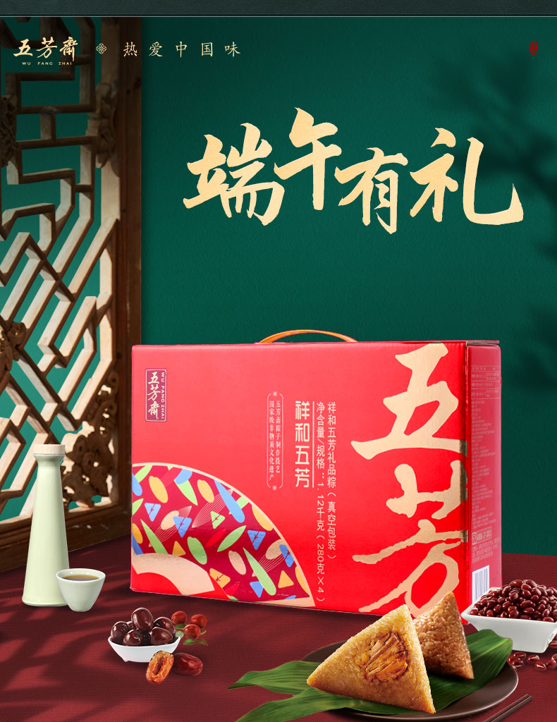 端午节五芳斋粽子礼盒,端午节礼品粽子,祥和五芳礼盒。