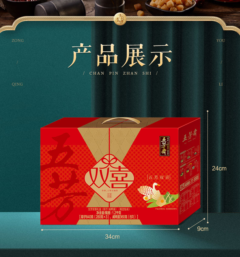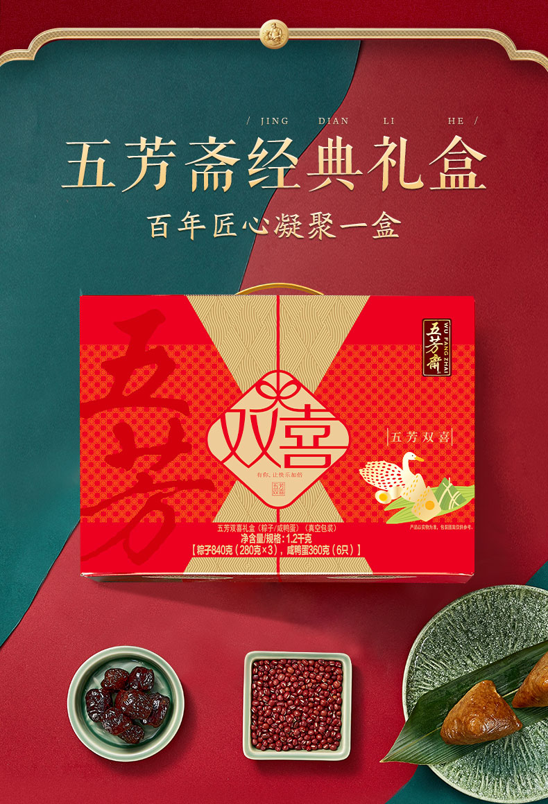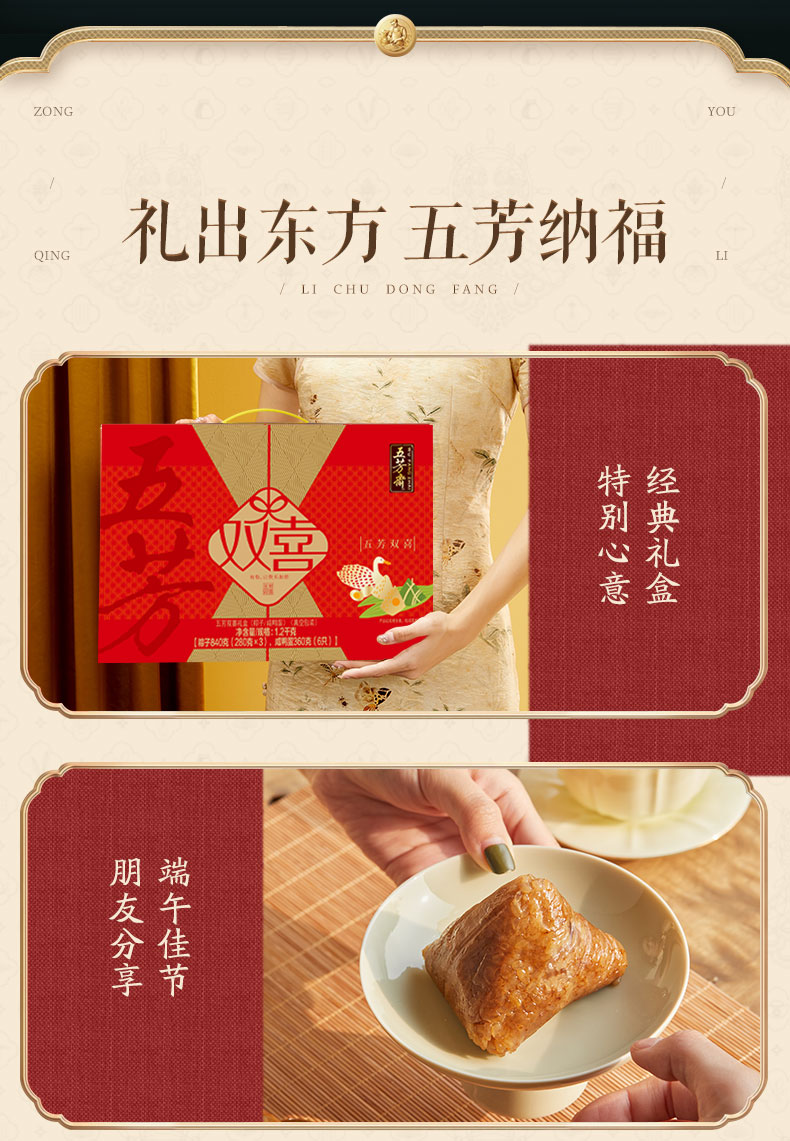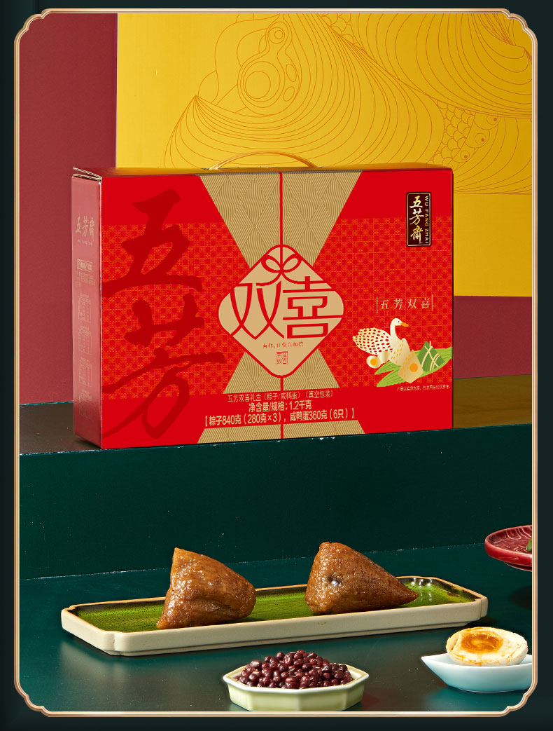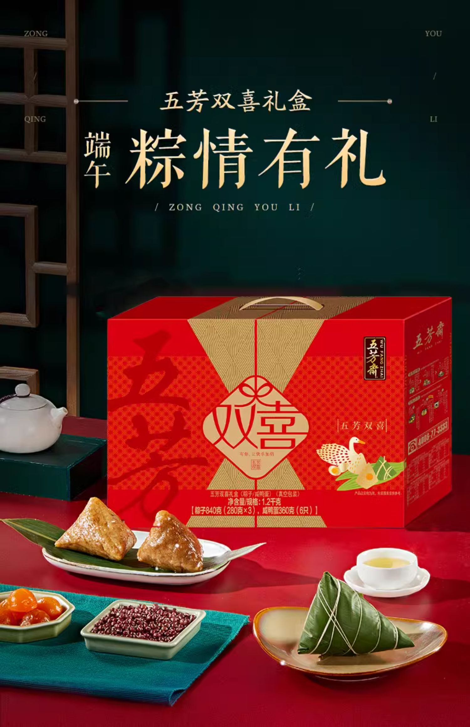 端午节五芳斋粽子礼盒,端午节礼品粽子,五芳双喜礼盒。