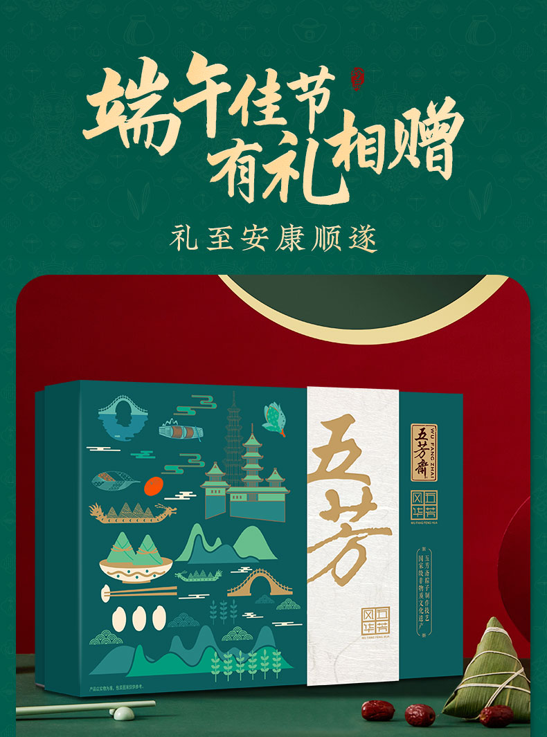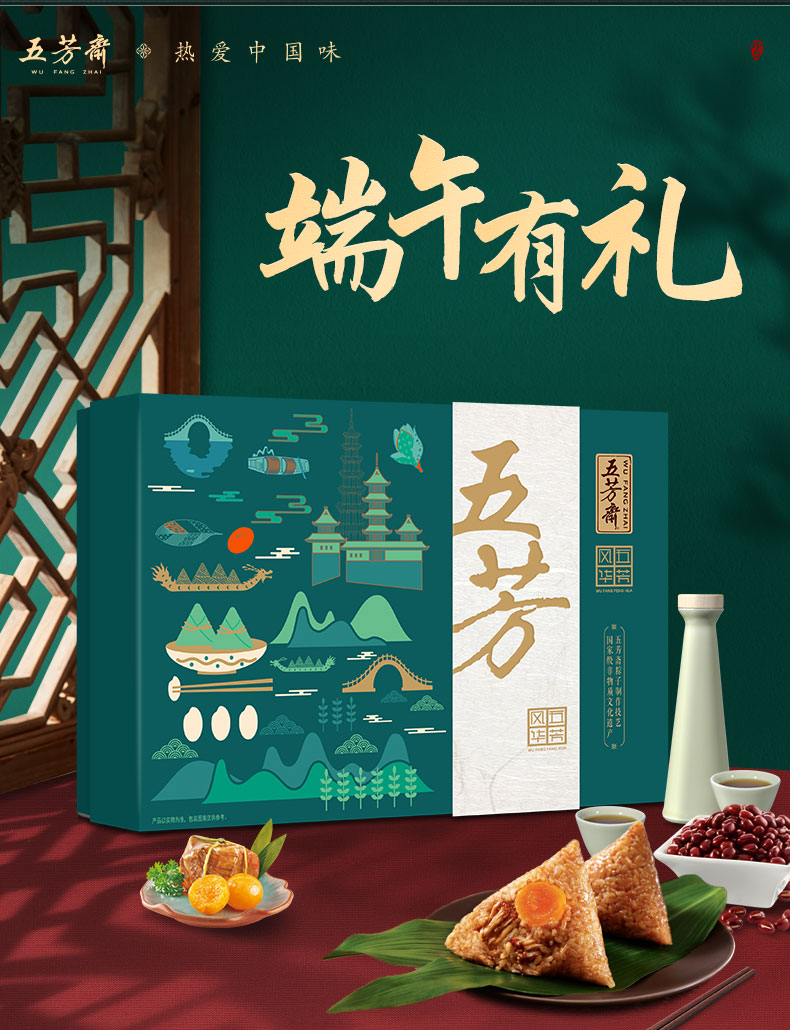 端午节五芳斋粽子礼盒,端午节礼品粽子,五芳风华礼盒。